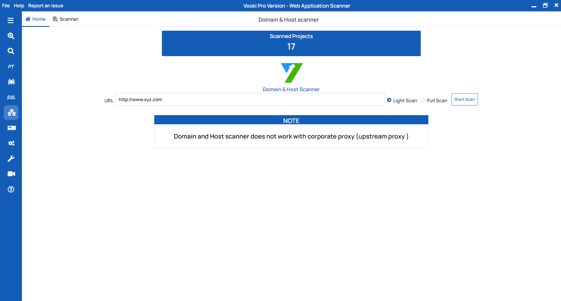 - Choose the Domain & Host Scanner from the left navigation bar.